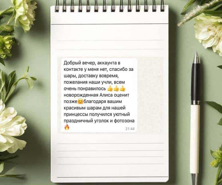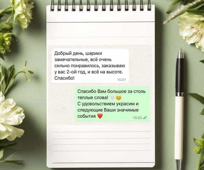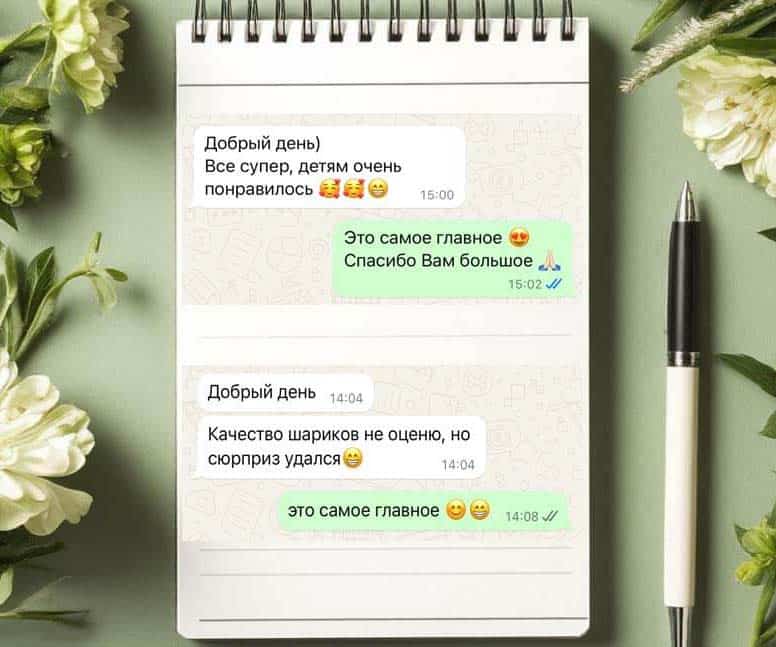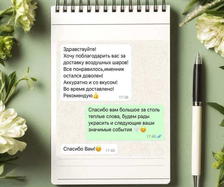 Наш главный ориентир — ваше удовлетворение, поэтому мы создаём незабываемые и яркие события. 🎭 Профессиональная команда работает чётко и обеспечивает безупречное выполнение заказов, включая ночную доставку воздушных композиций. 🚚